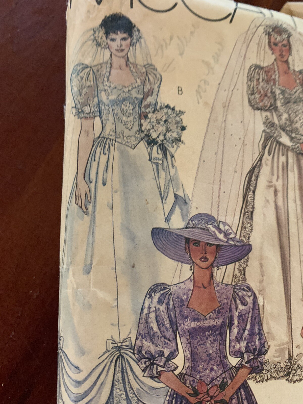 Vintage 80 S Wedding Bridal Dress Sewing Pattern Uncut Sz 10 Puffed Sleeves Ebay